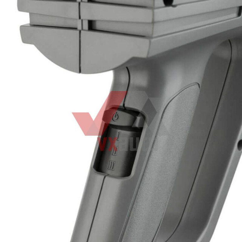 В модели реализован регулятор температуры от 60°С до 600°С для работы с разными материалами. Также предусмотрена возможность регулировки скорости потока воздуха для выбора оптимального режима работы. Имеет три положения: - воздушный поток 300 л/мин с выбором температурного режима от 60 до 400°С; - воздушный поток 500 л/мин с выбором температурного режима от 60 до 600°С; - воздушный поток 500 л/мин с температурой 60°С (без регулировки температуры).