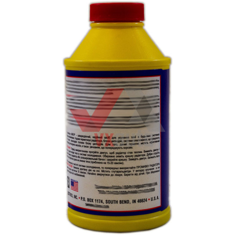 Посилений рідкий герметик для усунення витоків у системі охолодження (опалення). Ретельно герметизує найменші витоки в прокладках, ущільнювачах, пошкоджених шлангах і місцях стиків, попереджає появу протікань, не забиває трубки радіатора, витримує високу температуру, не випаровуючись і залишаючись у системі, оптимізує роботу систем охолодження. Може застосовуватися з усіма типами охолоджувальної рідини (тосол, антифриз і вода). Безпечний для алюмінію, сталі, чавуну, кольорових сплавів, пластику, гуми.