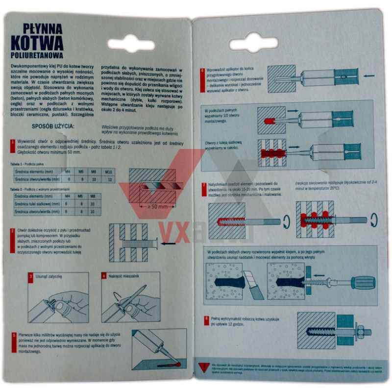 Двухкомпонентный полиуретановый клей для анкеров создает плотное и выдерживающее высокие нагрузки крепление, не дающее напряжения родному материалу. При затвердевании увеличивается в объеме.
