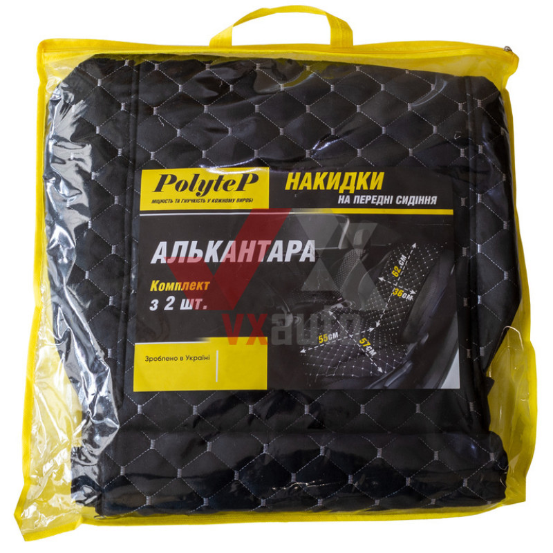 Накидка на сидіння передні (алькантара) чорна PolyteP, к-т (2 шт., біла строчка)