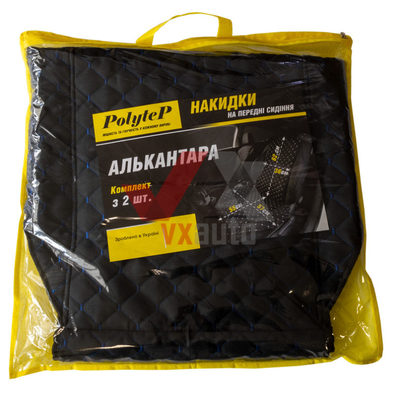 Накидка на сидіння передні (алькантара) чорна PolyteP, к-т (2 шт., синя строчка)
