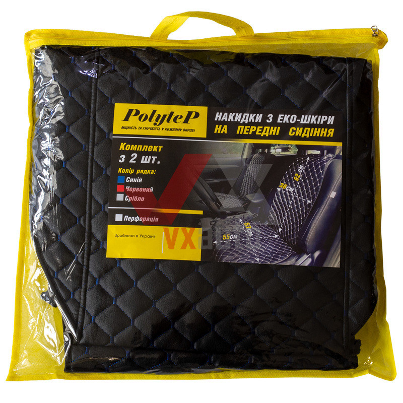 Накидка на сидіння передні (екошкіра) PolyteP, к-т (2 шт., синя строчка)— купуйте у нашому магазині за вигідною ціною.