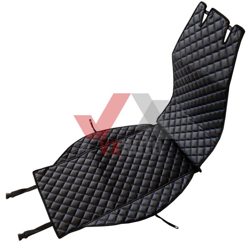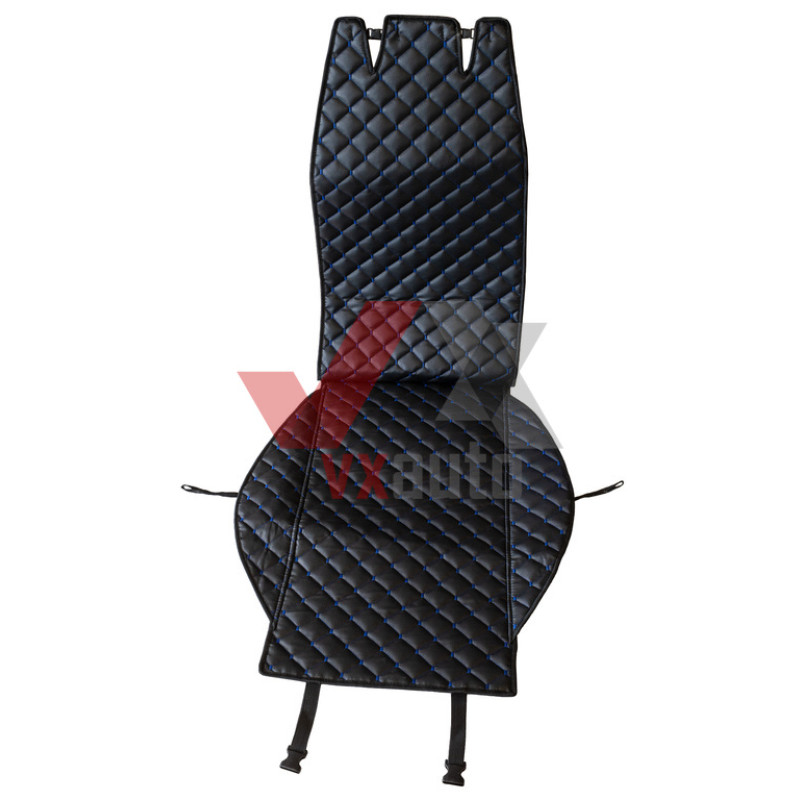 Накидка на сидіння передні (екошкіра) чорна PolyteP, к-т (2 шт., синя строчка)