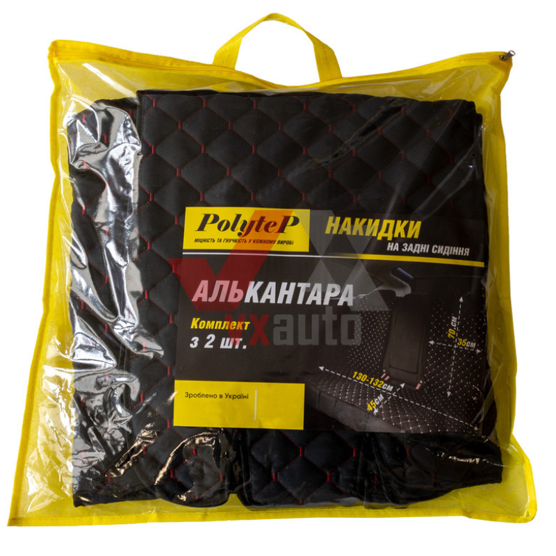 Накидка на сидіння задні (алькантара) чорна PolyteP, к-т (2 шт., червона строчка)