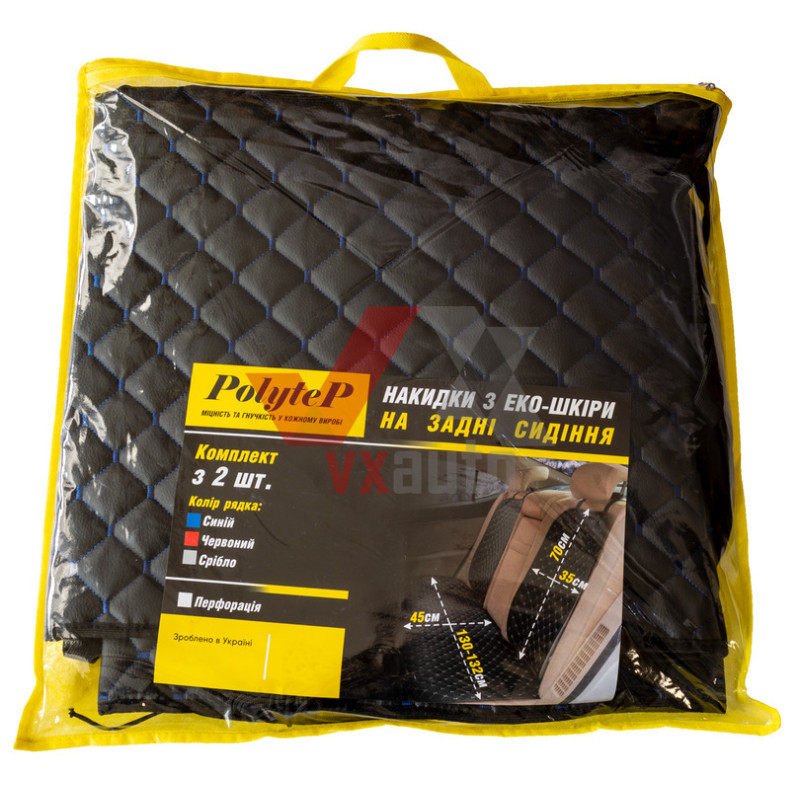 Накидка на сидіння задні (екошкіра) чорна PolyteP, к-т (2 шт., синя строчка)
