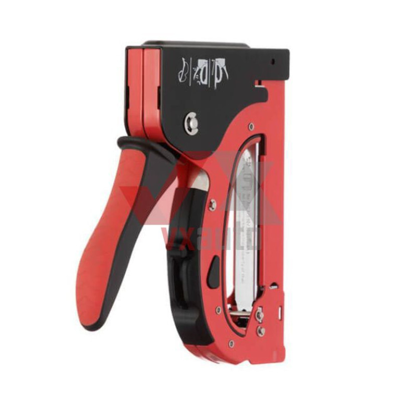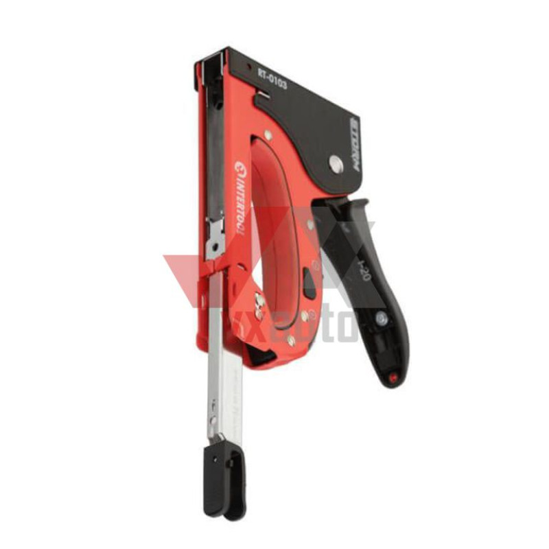 Будівельний степлер (текер) – незамінна річ в арсеналі інструмента у будь-якого майстра. З його допомогою оббивають меблі, драпірують, прикріплюють ковролін до підлоги, виконують монтаж проводки і ще багато інших робіт.Головна особливість цього степлера - в наявності ресорного механізму, за допомогою якого і виконується забивання скоб.Він дозволяє докладати менше зусиль, при цьому отримувати більш потужний удар і знижену віддачу.Циліндричні пружини звичайного степлера швидко зношуються, на відміну від пластинчастих (ресорних) пружин, які гарантують тривалий термін служби.Ресурс не менше 50 000 ударів.Механізм швидкого завантаження скоб позбавить від довгих мук завантаження витратних матеріалів, як у звичайному степлері.Повністю металева конструкція степлера гарантує надійну роботу тривалий термін.Зручна ручка з гумовою накладкою відповідає вигинам долоні для відмінного захвату в роботу, а низька віддача не утомлює руки в процесі.Ручку можна компактно скласти для комфортного зберігання і транспортування.Двохпозиційний регулятор зусилля дозволяє виставити необхідну силу забивання скоб в різні матеріали.Ви можете встановити максимальну чи мінімальну силу удару, всього лише в один рух.